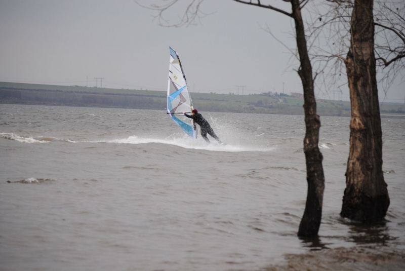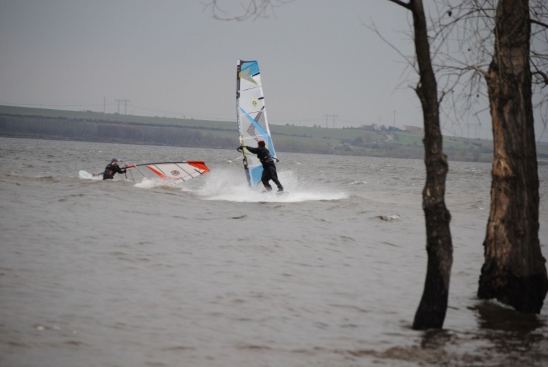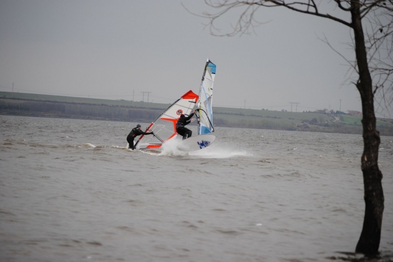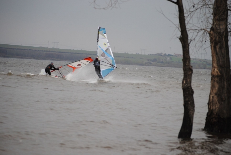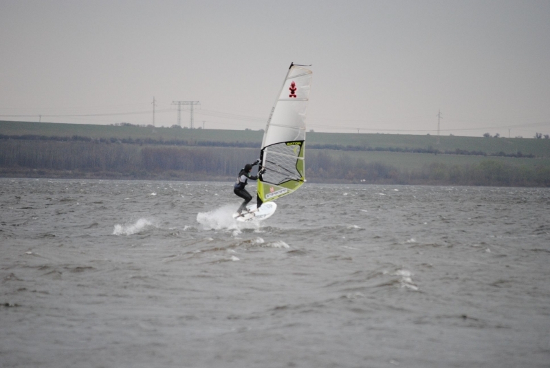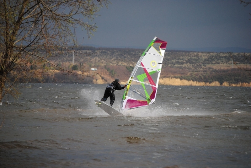 Zima jak v Rusku, vítr nárazový, tak jak na Nechranicích severozápad bývá. Jezdil jkksem 4,7 s wavem a 5.0 s freestylem. Přikládám pár fotek pro dokreslení atmosféry.