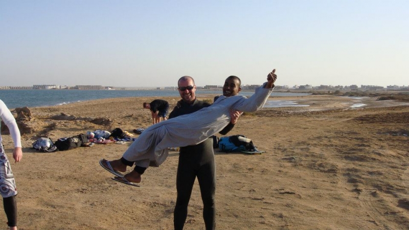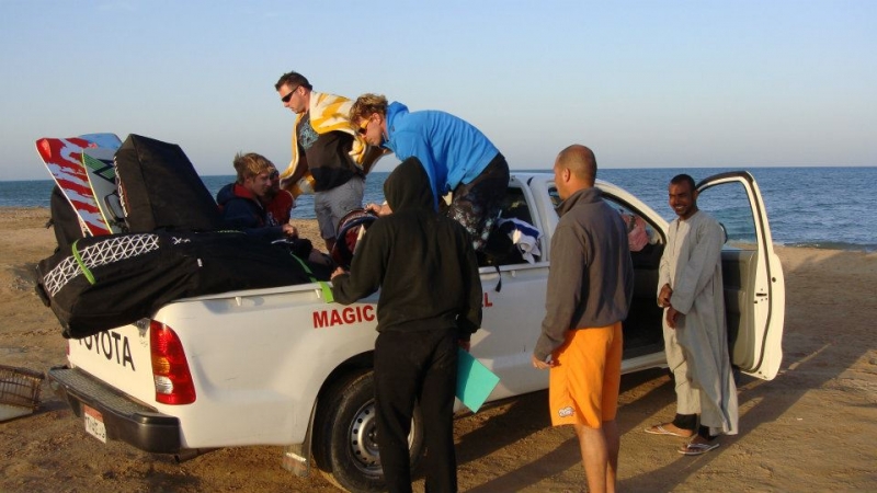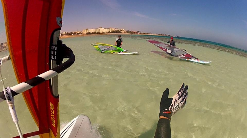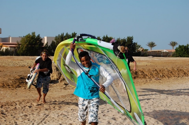 Toto místo má několik výhod a to zejména cena, podmínky i pro začátečníky, prostředí. Týden s all inklusive koupíte v zimě za 280 až 350Eur(kompletní cena, zařídí i CK INVIA Chomutov). Cajky máte přímo u vody, žádné přesuny, strojení, atd. Vím, že mě na tomhle serveru můžete kamenovat, ale za slabého větru je toto ideální místo na výuku kitu, což po několikadenním kurzu zvládne každý z vás (běžnou jízdu). Pak si užíváte dovolenou na plnej plyn. Pokud nejste na serfu, jste na kitu (pokud foukaj sračky), na kajaku, nebo kalíte, což je občas taky třeba. Ideální pro rodinu s prckama, o které se postará Staff hotelu a v mělké vodě je nemusíte hlídat. Majitel hotelu je Egypťan, náš dlouholetý známý, který nás navštěvuje i v Čechách a kdyby se naskytl jakýkoli problém komukoli, tak se postará, opravdu českou komunitu může. S naší partičkou jsme vybrali termín začátkem března a byli jsme na vodě 9 dní v kuse. Já osobně jsem tam byl během zimy třikrát a po dohodě s Honzou jsem měl všechny cajky uskladněné na místě ( i když jsem byl v Čechách).