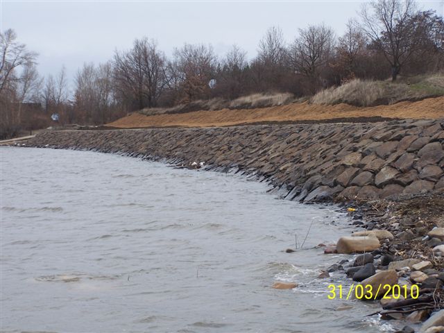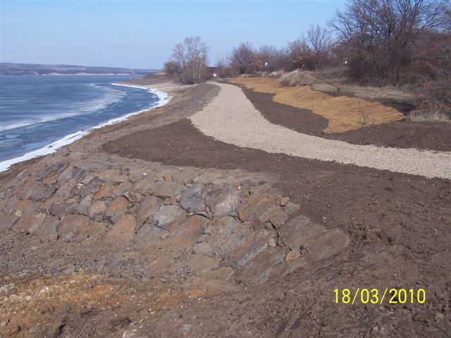 Před vlastní realizací stavby probíhala projektová příprava včetně všech potřebných projednání s úřady a zúčastněnými organizacemi. Výsledkem byl návrh stabilizace tří úseků vždy s vynechaným prostorem pro přirozený rozvoj životního prostředí. Tyto úseky téměř nebyly zasaženy abrazními jevy a současně bylo v zájmu ochrany přírody a krajiny ponechat tato místa v původním stavu bez jakéhokoliv zásahu.