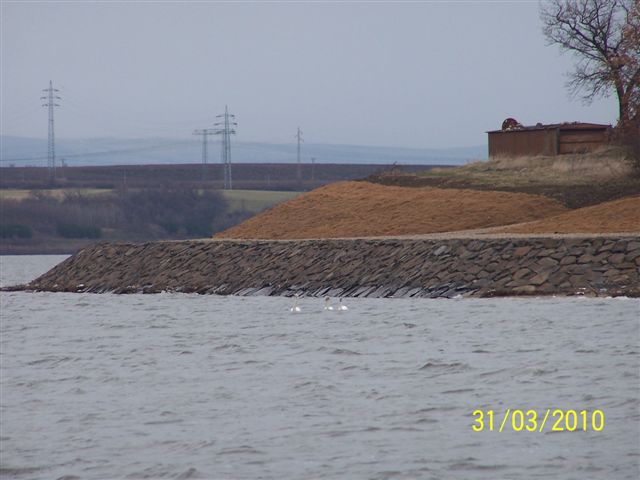 Pro stavbu bylo nutné snížit hladinu vody v nádrži, proto se práce provádějí v podzimních a zimních měsících. Pro kamenné konstrukce je dovážen kámen z nedalekého lomu v Úhošťanech. Realizaci provádí firma Bauvant, s. r. o., a objednatel, tedy Povodí Ohře, na tuto stavbu vynaloží přes 21 mil. Kč. Předpokládané ukončení prací po jarní a letní přestávce očekáváme v prosinci 2010.