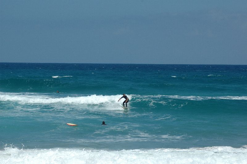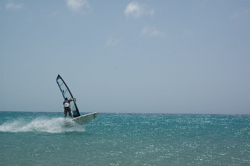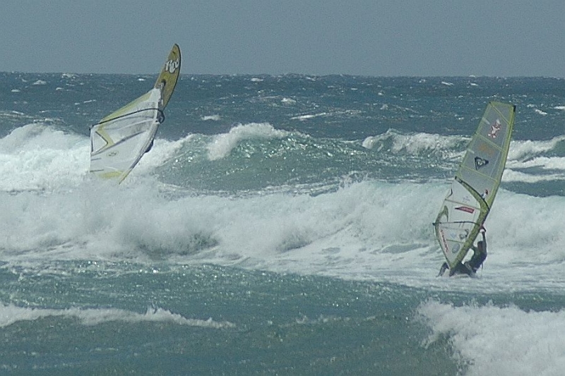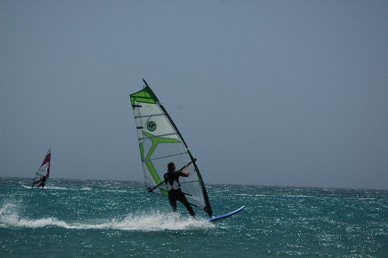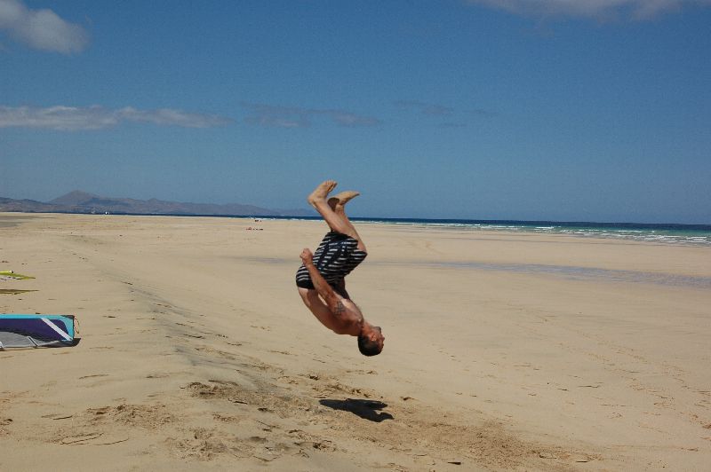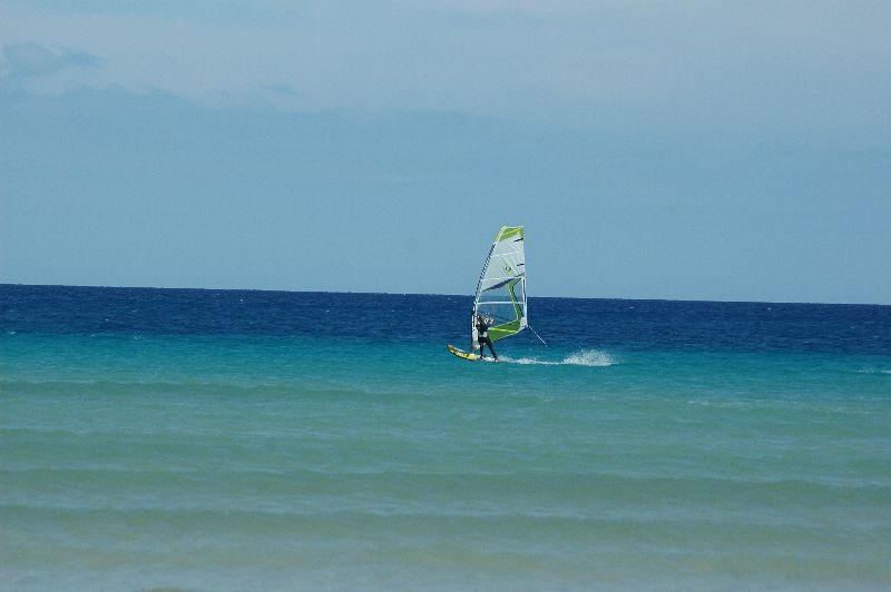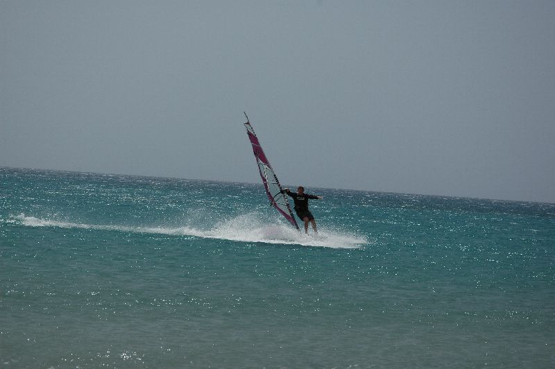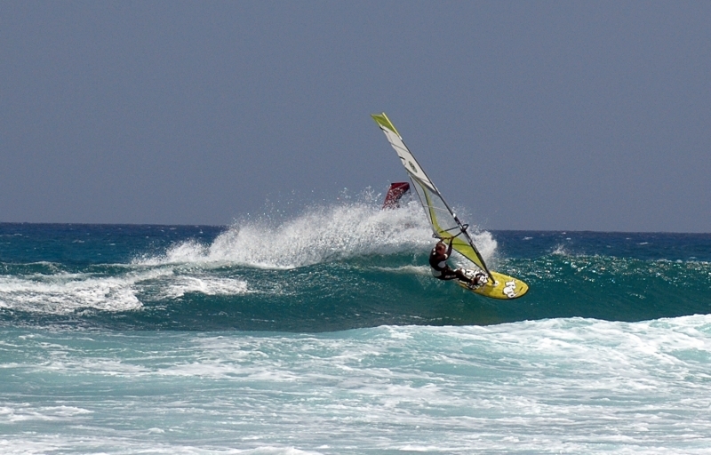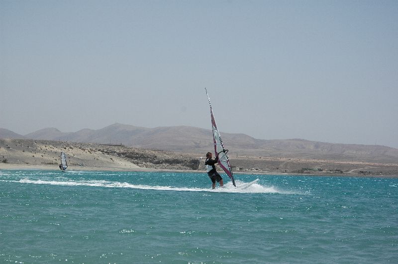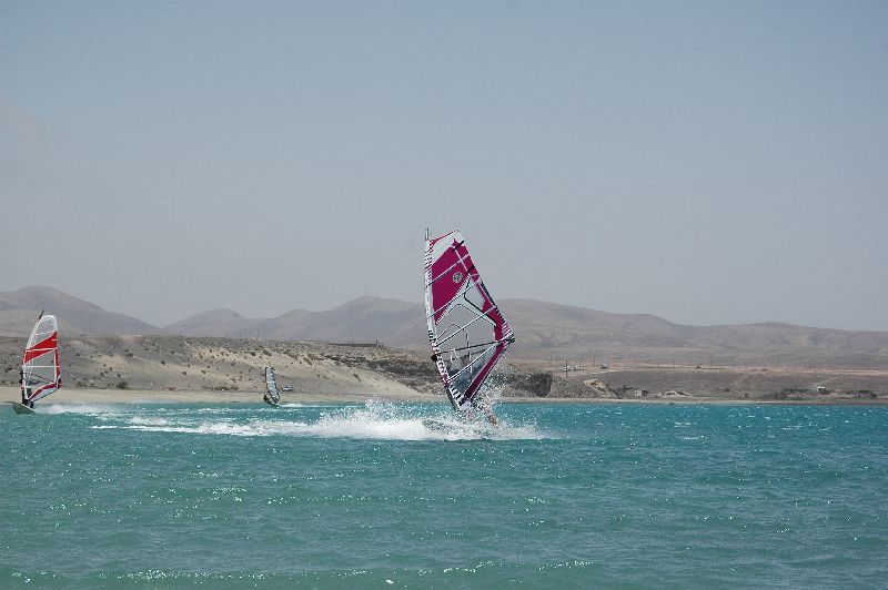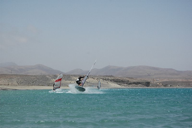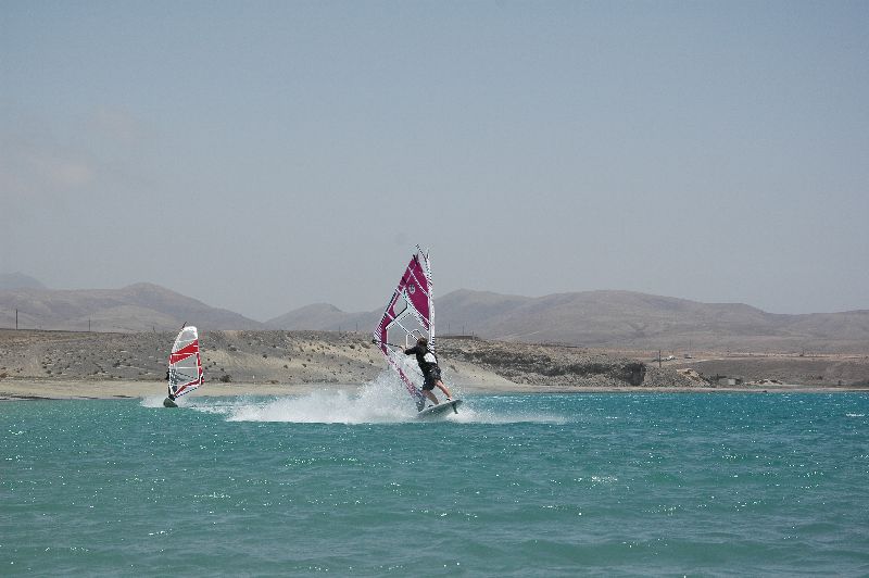 Od tý doby co je na Fue Pankáč patří tenhle kanárskej ostrov mezi českýma surfařema k nejoblíbenějším místům.... Nás tam lákaly skvělý podmínky jak na FS a wave, tak i náš kámoš Prtkynz, kterej se tam přestěhoval z Tenerife loni na jaře... Bydleli jsme v Costa Calmě v apartmánku, co nám sehnal přes místní realitku. Malej byt o 3 pokojích a velkym balkonem pro 4 lidi bohatě stačil. Už jsme na Fuerte byli před 4 rokama, ale to jsme jezdili jenom dva dny a to hned ty první - nic moc. Letos bylo všechno jinak. Ze 14 dnů nefoukalo jenom jeden a to zas tak nevadí... Nejvíc ježděná plachta byla 4,2 a 5,0. Na vlnách jsme byli jen dva dny. Punta blanka pěkný na skákání, ale potřeboval bych silnější vítr. Přítomnost jedný z dvojčat Morénových, ale bylo jasným důkazem, že to byla nejlepší volba. Já 95litrů a 5,4, Kamil 5,3 a 84 a Zája 5,4 a 88 litrů. Dalším vlnovym revírem byla Glass Beach - Buro. Skleněná vlna kolem 2 metrů, ale opět slabší vítr. Z vlny dolu to bylo opravdu super, i když nic nenasere víc, než když ti po čtvrthodině brodění ukradne krásnou vlnu lokál, kterej přesně ví co a jak....Zbytek pobytu jsme brousili FS na Sotaventu na spodním WS Centru nebo na pláži nad Casta Calmou. Pár dnů jsme měli na sotáči pověstnou metrovou offshore vlnu, která je opravdu zábavná. U aparátu se střídal Kamil s Ivankou....