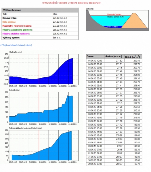 Dnes v 10:00 dosáhla hladina 271.52 m n. m. tj. cca půl metru pod kótou přelivu (271.9 m n. m)Aktuální stavy a průtoky na nádrži.