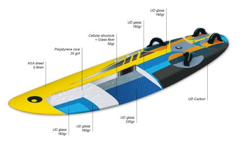 Parametry : 133 litrů, 250 x 70 cm, 9,5 kg , ploutvička DTB 40cm, konstrukce Thermoformed Glass Composite (polystyrenové jádro, glass + epoxy, vnější vrstva 0,8mm ASA fólie, vše lisováno pod tlakem a vysokou teplotou v Alu formách)