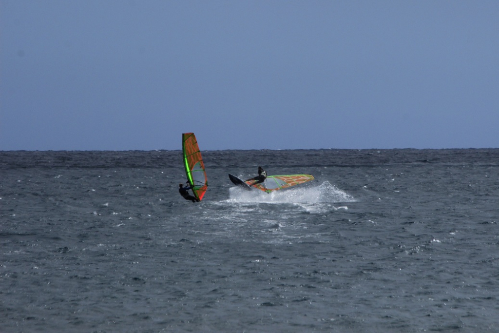 Je to naše první celá zima na ostrově, která probíhá podle představ. Příjemná teplota kolem 20° Celsia a vítr luxusní. Brácha přijel na měsíc a únor byla dobrá volba. Nonstop vítr a nejpoužívanější plachta 4.4, i když občas nás to tu zabíjelo i na 3.6. Teploty v prosinci a v lednu byly až letní. Od února už bereme dlouhý neopreny. Jen brácha první dva týdny soukání do gumy odmítal.. a jak byl pak rád, že si dlouhej dovezl :) přeci jen oceán není moře a tak odhaduju teploty vody poslední týdny něco kolem 18ti stupňů.