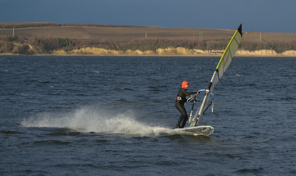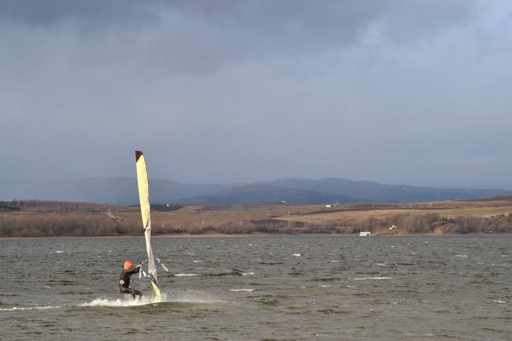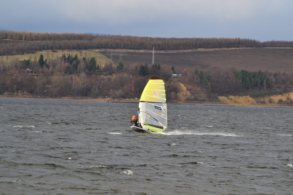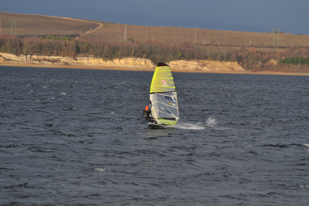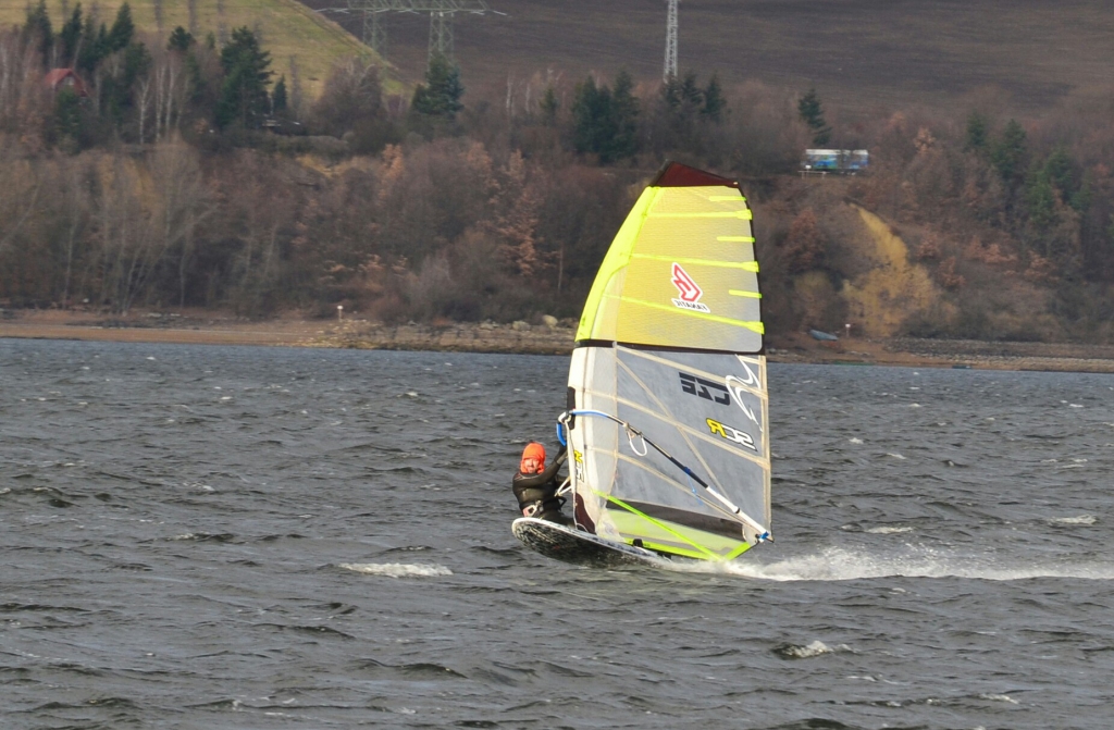 Tento víkend opravdu slušný mazec,začalo to velmi pohodovou sobotou na největší cajk,kdy jsem jezdil 122l a 9,0m....naprosto brutální kombinace,minimum větru a tradá už to maže ve skluzu,vyždímal jsem z toho asi hodku a půl....říkám si dobrý uvidíme co zítra,předpověd je lepší na neděli....ráno nestíhám rychlá snídaně(9:0hod) na vodě samá čapka ,virážim tradá k vodě....beru to nejmenší co na slalom mám 105l+6,2m dávám první tři šláky,plachta fůůl na 100% jen pro náročne ,šup ven...krátká pauza abych se vzpamatoval,vítr nepolevuje....jedu dál,krásný pojezd asi na dvě hodky pak to totálně spadlo...a balím na víc stejně už nemám,šup na oběd,a do sucha.Oběd +pauzička,říkám si no už nejdu,ale vítr se nasměroval na čistý západ,směr na hráz a zas samá čepice+sluníčko,tak nelením strojím na jistotu 105l+7,8m,dávám tak hodku a půl na doraz a ven....najeto 49km max speed 53km, pro mě jeden z nejlepších pojezdů za tento velmi nevydařený podzim, a asi nejlepší speed za celí rok.No uvidíme co příště....necháme se překvapit,ALOHA všem.....