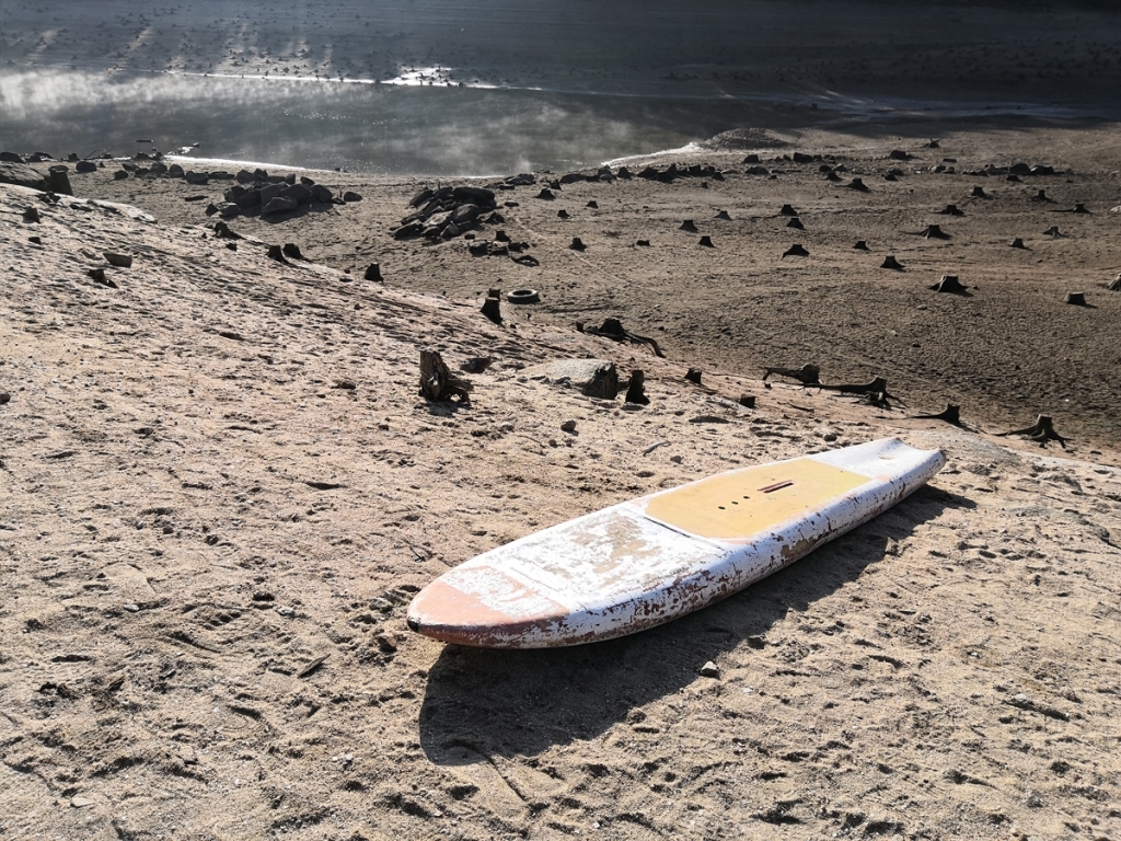 Při dnešní návštěvě hodně vypuštěné Orlické přehrady jsem objevil na pláži cca 7 m pod normální hladinou plovák winglidra.
