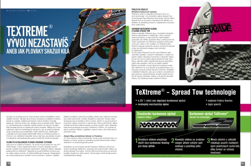 • Magazín Windsurfer opět nahlédl do zákulisí vývoje nových plováků. V nejnovějším čísle jsme si posvítili na nový, ultralehký materiál Textreme, z kterého je vyrobený i nejnovější FANATIC Freewave 2011.