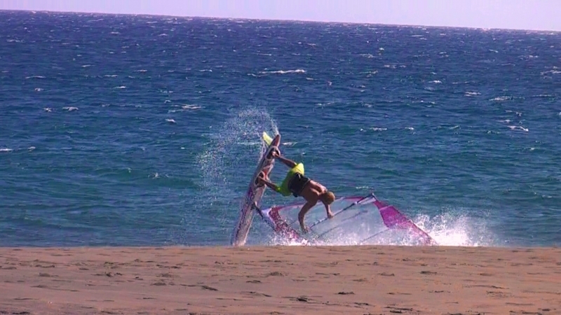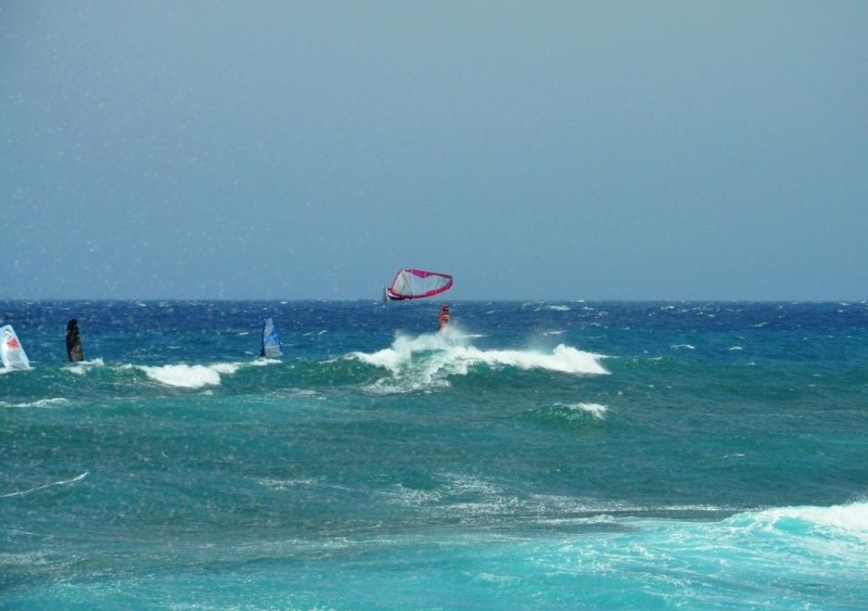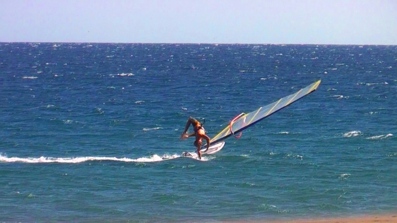 Po tejdnu mrskání se v hladkých vodách(ještě, že alespoň tak) kvůli nedostatku větru ve vlnovištích a bohužel přesně den po odjezdu poměrně početný český bandičky konečně zas začalo fučet na místech zaslíbených. Jak podmínky napovídaj, tak škody na materiálu i na vlastních tělních skořepinách celkem narůstaj :-( ale vždycky může bejt hůř:-) Dnes to vypadá na pořádnou nálož se solidníma vlnama....................................