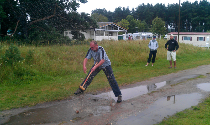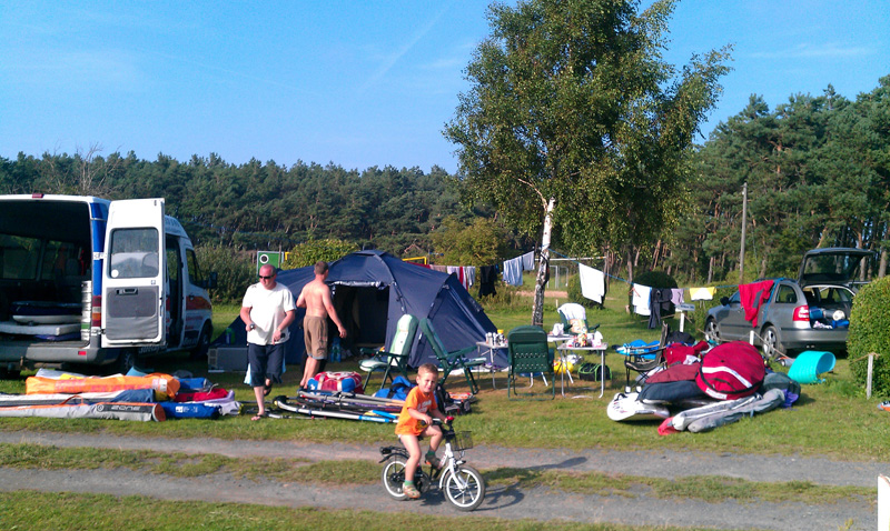 Už loni jsme plánovali pořídit nějakou podvodní kamerku na blbnutí, tak letos k tomu konečně došlo. Po googlení jsme se rozhodli pro celkem slušnou kamerku GOPRO HD v provedení HELMET za ještě celkem přijatelný peníz. Před odjezdem jsem ji vybavil 16GB SSD kartou. V sadě jsou 4 lepítka na helmu, kloub, páskový úchyt a čelenka na hlavu, kterou jsme nakonec používali nejčastěji. Pro jistou jsme k ní přivázali za krátký provázek ještě malý plováček z extrud. polystyrénu. Sama v pouzdře sice plave, ale pokud by z hlavy, nebo držáku nějakým karambolem či jiným nedopatřením :)) spadla, hůř by se ve vlnách hledala. Kamera je neuvěřitelně rychlá, slušná hloubka ostrosti, krásně odfiltrovaný šum proudícího větru pomocí dvou mikrofonů. Čistý obraz v HD rozlišení nás prostě překvapil. Táhli jsme ji i v Sassnitzu v bězvětrném čase do ponorky, na útesy do národního parku atd. Ovládá se jednoduše dvěma tlačítky. Jedno na režim a nastavení všech možných video módů 16:9, 4:3 ve FULL HD při 29fps, jeden z módů 16:9 umí i 60fps pro kvalitní zpomalené záběry. Sekvence snímku a jednotlivá fota jsou samozřejmostí v 5MB rozlišení. Druhé tlačítko jen zapíná/vypíná. Někdy, když vám kolem uší fakt fičí přes 12 -15m/s už je bohužel hůř slyšet pípání, které počtem pípání indikuje, zda kamera točí, či ne, ale to by na ní musela být siréna , každopádně stav indikuje blikající červena LEDka, takže vsjo jásno...