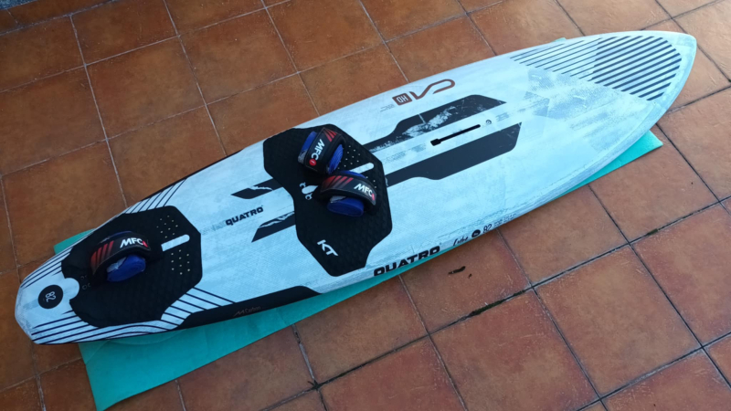 Univerzální wave plovák Quatro Cube včetně origo flosniček a poutek. Rychle do skluzu, super stabilní, výborný v bottom i top turn. Špička ve své třídě. Téměř neježděný, párkrát na vodě, stav nového prkna.